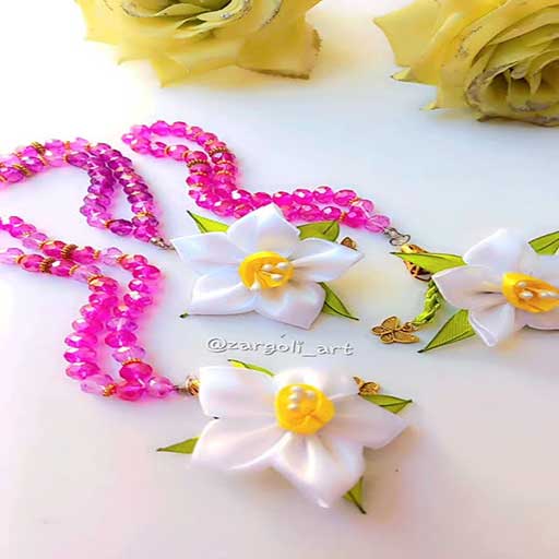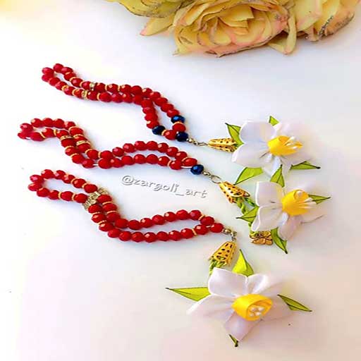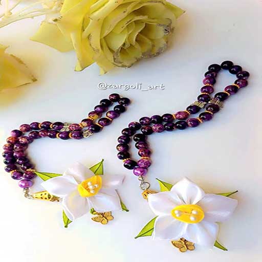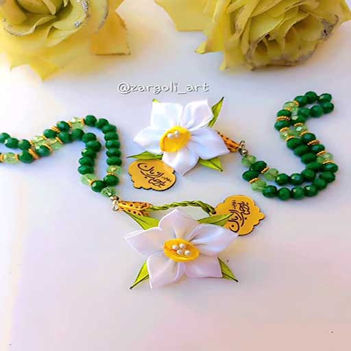 تسبیح گل نرگس مرواریدی و کریستالی بابهترین کیفیت گل و مهره